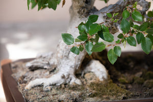 Chinese Elms are one of the most popular bonsai trees because their bark develops an aged look over time, the leaves remain tiny as the tree develops more branching, and the tree will become stately overtime.